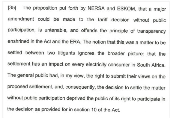 The court further found that at least part of the reason Nersa settled with Eskom was self-serving and improper. The regulator was embarrassed by its mistakes and tried to keep the matter under wraps.