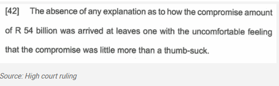 The court agreed with AfriForum and Minerals Council SA’s objection that the decision to settle – which affects the whole nation – was taken without any public participation and concluded that that is “clearly contrary to public policy”.
