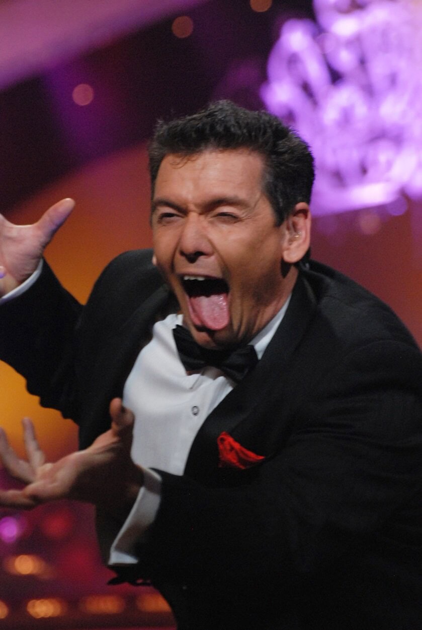 2006. South Africa reality TV show Strictly Come Dancing hosts Sandy Ngema and Ian von Memerty.